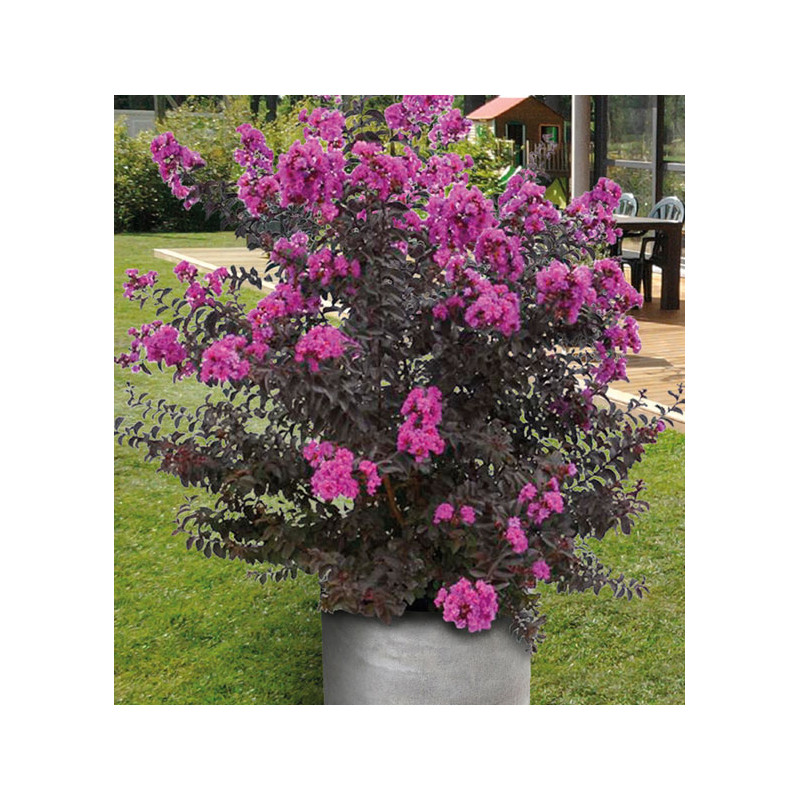 Ces Lilas des Indes de la série Black Diamond® à feuillage noir luisant offrent des floraisons spectaculaires s’étalant sur plus de 3 mois, créant ainsi un contraste magnifique !